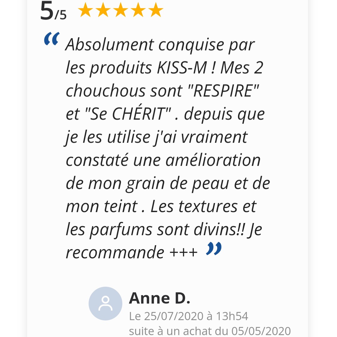 À NOTER : Les propriétés, indications et modes d’utilisation des ingrédients des soins sont tirés d’ouvrages de référence en aromathérapie, hydrolathérapie, phytothérapie et/ou de publications scientifiques. Ces informations sont données à titre indicatif et informatif. Elles ne sauraient en aucun cas constituer une information médicale et encore moins s’y substituer. Elles n’engagent donc en rien la responsabilité de Kiss-M. Pour tout usage dans un but thérapeutique, merci de consulter un professionnel de santé.